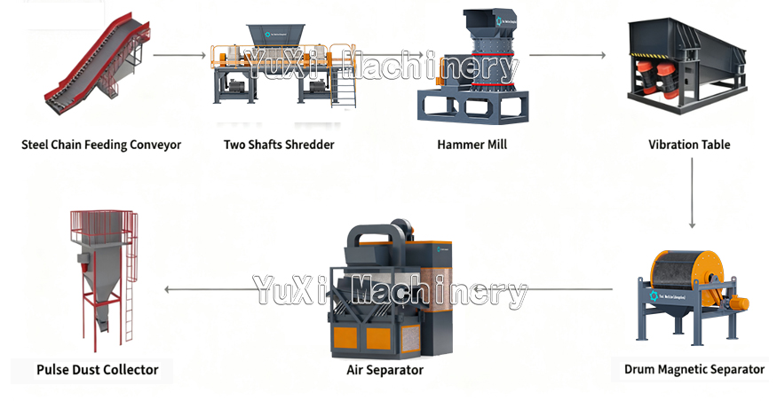The scrap motor rotor crushing and sorting system is a high-end environmentally friendly device that integrates automation and intelligence. Designed specifically for the structural characteristics of various scrapped motor rotors, it utilizes advanced physical crushing and multi-stage sorting technologies to efficiently separate and recover metals such as iron, copper, and aluminum from the rotors.